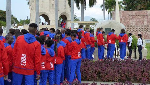 Según reseñó el medio, el pelotero Frederich Cepeda, de Sancti Spíritus, y el gimnasta Manrique Larduet, de Santiago de Cuba, se encargaron de colocar una ofrenda floral ante la llama eterna que arde en el camposanto.