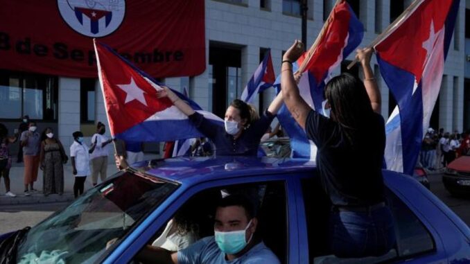 Pese a la crítica situación sanitaria de Cuba, este jueves cientos de partidarios del régimen de La Habana participaron en una caravana «por la paz, el amor y la solidaridad» mediante la cual recorrieron unos siete kilómetros del emblemático Malecón habanero hasta el parque 13 de Marzo, en donde exhibieron mensajes y consignas en apoyo al gobierno y a Fidel Castro.