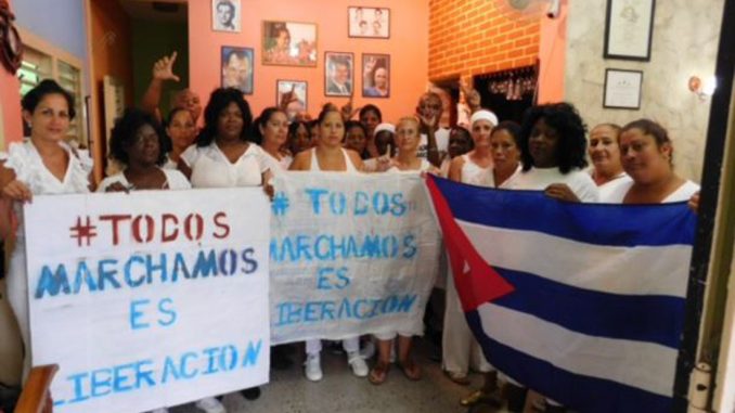 «Les dijeron que tenían que virar para sus viviendas. Ellas respondieron que iban a seguir para la iglesia como todos los domingos», relató. En el momento del arresto, «empezaron a gritar consignas como ‘Vivan los derechos humanos’, ‘Respeten los derechos humanos’, ‘Abajo la dictadura de los Castro'». En respuesta, los agentes «las golpearon por el rostro, la espalda, el abdomen».