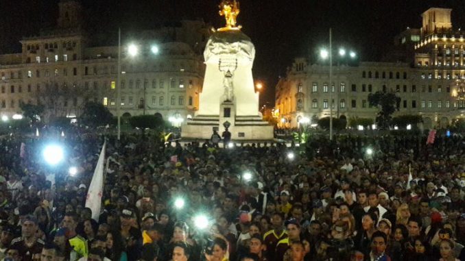El clamor de cientos de venezolanos pidiendo la renuncia de Nicolás Maduro a la presidencia de la República de Venezuela, estremeció la plaza San Martín de Lima, en Perú, donde se congregaron luego de participar en una multitudinaria marcha organizada por la ONG Unión Venezolana en Perú, para escuchar mensajes de líderes de la oposición venezolana que asistieron a la Octava Cumbre de Las Américas.