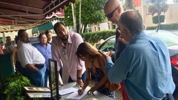 La recogida de firmas, realizada el sábado en dos emplazamientos en Miami, fue coordinada por la Asamblea de la Resistencia Cubana (ARC), grupo que busca entregar al presidente estadounidense, Donald Trump, la petición en la que le solicitan “hacer efectiva la ley (de EE.UU.) 104-114, Sección 116, Cláusula (b) (3)”.