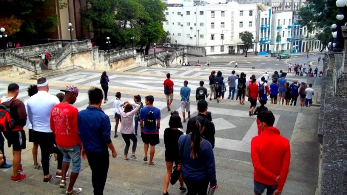 Estudiantes bajando la escalinata de la Universidad de La Habana (Foto archivo)