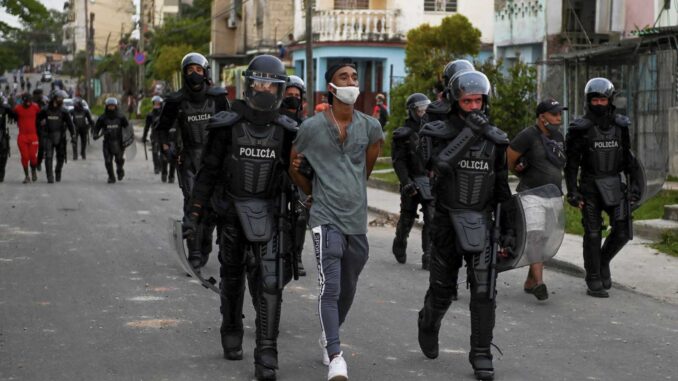 Cuba se ha rebelado contra el castrismo y las calles de todo el país se han llenado de ciudadanos exigiendo libertad, al grito de «¡Patria y vida!». Pero en las 48 horas primeras horas de esta revuelta cívica ya se ha dejado ver la huella de la represión castrista: ya hay una lista de más de cien desaparecidos por toda Cuba, la ola de detenidos sigue creciendo y las comunicaciones de la isla con el exterior han sido bloqueadas.