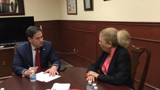 El senador estadounidense Marco Rubio (R-FL) recibió el viernes a la opositora cubana y exprisionera política, Martha Beatriz Roque, de visita en EEUU.