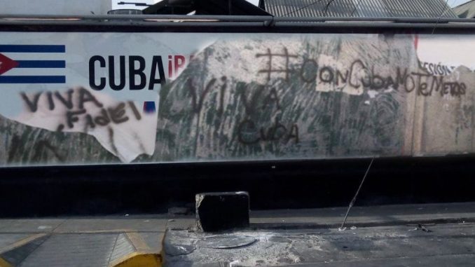 A través de la consigna “Con Cuba NO te metas”, adjudica el vandalismo a “amigos de Cuba en Perú”, quienes “ratificaron en Lima que no hay provocación de la contrarrevolución mercenaria que quede sin respuesta”.