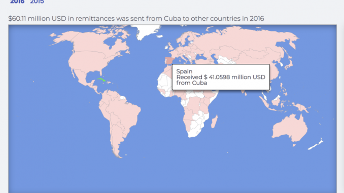La página reporta las remesas que salen desde Cuba, y se reportan solo 2 años: el 2015 y el 2016. En estos dos años han salido de Cuba alrededor de 120 millones de dólares.
