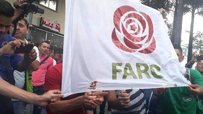 A la llegada a uno de los emblemáticos parques de la ciudad fue increpado por una turba de simpatizantes, quienes siguieron con los insultos hasta el punto de tomar banderas de las FARC destrozarlas e incluso quemarlas.